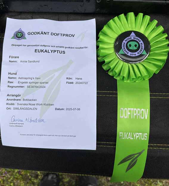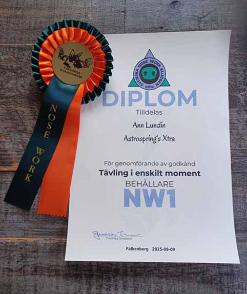 tvåårsdagen och under hösten fick sista diplomet i Nose Work 1.